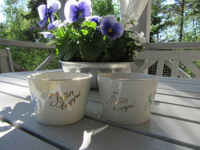 Isän kuppi ja Äidin kuppi? Hyvin vähän käytetyt mutta tunnearvon takia palaavat kaappiini. Isovanhempien kupit, heidän kuoltuaan minulle päätyneet.